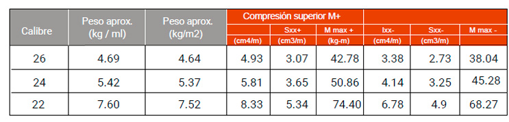 Consideraciones de fabrica (cm4/m)