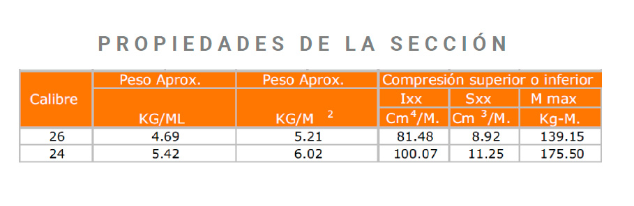 Las propiedades y capacidad de carga fueron calculadas para un acero G37 (FY2600 kg/cm2, Fb=156 kg/cm2)