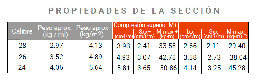 Las propiedades y capacidad de carga fueron calculados para un acero G37 (FY2600 kg/cm2, Fb=1560 kg/cm2).